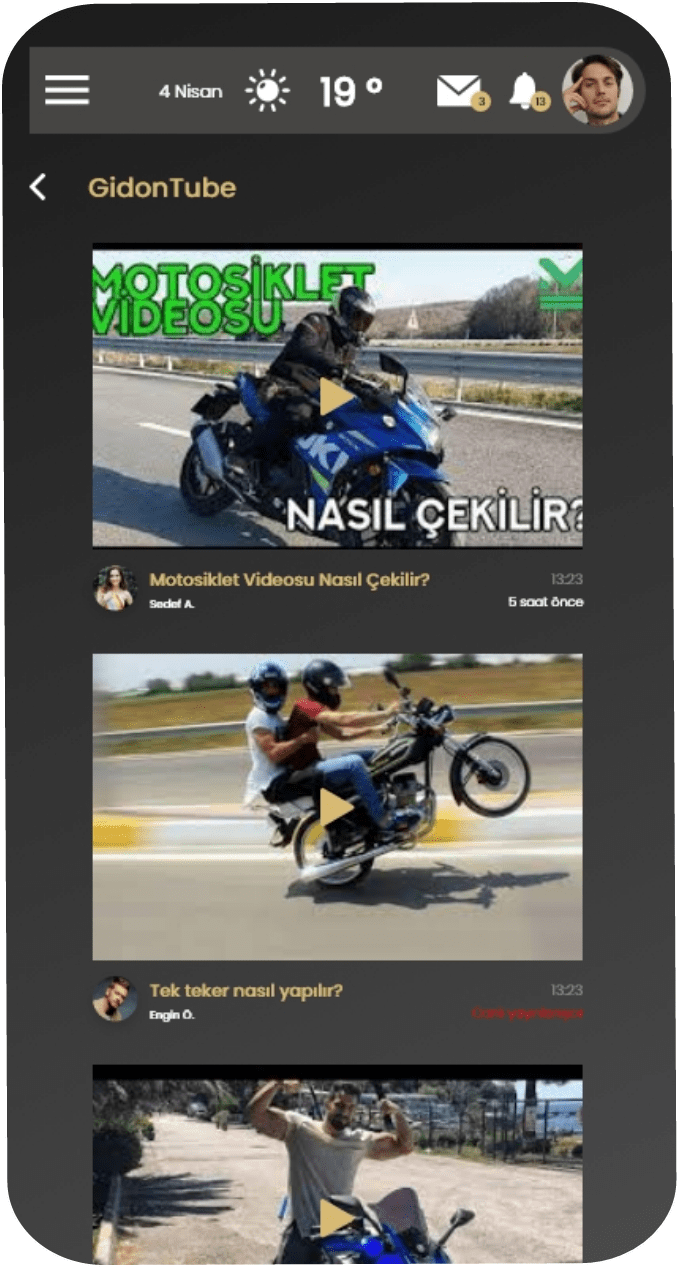 Uygulamamızı kullanırken hem müzik dinleyebilir hem de GidonTube'da videolar izleyebilirsiniz.